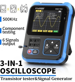 FNIRSI DSO-TC3 Осциллограф + Транзистор-Тестер + Генератор сигналов - одноканальный 500кГц осциллограф, многоцелевой тестер радиокомпонентов, генератор сигналов.